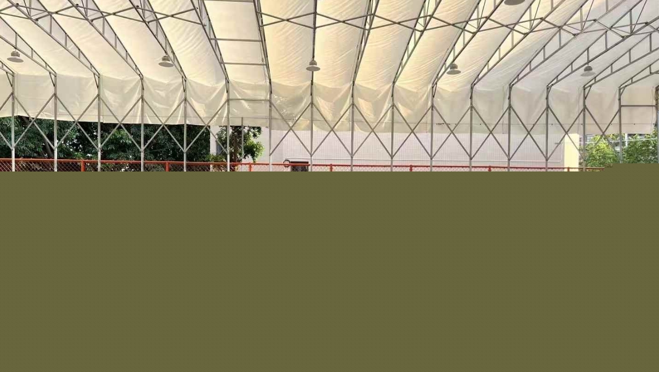籃球場(chǎng)膜結(jié)構(gòu),以高強(qiáng)度膜材構(gòu)成,采用先進(jìn)的張拉技術(shù),形成曲面覆蓋體系。其骨架采用碳鋼或鋁合金材料,經(jīng)特殊焊接工藝制成。膜結(jié)構(gòu)自重輕,抗風(fēng)壓性能優(yōu)良,確保籃球場(chǎng)安全穩(wěn)固。在保證籃球場(chǎng)美觀的同時(shí),提供舒適的運(yùn)動(dòng)環(huán)境。