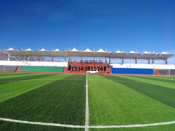 膜結(jié)構(gòu)看臺(tái)是20世紀(jì)中期發(fā)展起來(lái)的一種新型建筑結(jié)構(gòu)形式,是由多種高強(qiáng)薄膜材料及加強(qiáng)構(gòu)件通過(guò)一定方式使其內(nèi)部產(chǎn)生一定的張應(yīng)力,加上高強(qiáng)度材料鋼索、鋼結(jié)構(gòu)的采用,使其成為能承受一定外荷載作用的。適合跨越大空間而形成無(wú)柱的大跨度結(jié)構(gòu)體系,該體系自重輕、造型可以靈活多樣,它可打破純直線建筑風(fēng)格模式達(dá)到了剛與柔、力與美得完美組合。具有良好的環(huán)保性、透光性、自清潔性更具有很好的防火性和抗震性,越來(lái)越受到建筑師的青睞,具有廣闊的應(yīng)用前景。