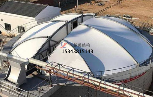目前,污水池密封可采用的設計方案: 鋼支撐反吊膜、無骨架密封集氣罩、 懸索反吊膜等不同的設計方案,每種設計方案材料的用量都會有很大區(qū)別。一般采用鋼支撐反吊膜的較多,跨度太大時可以選擇無骨架密封集氣置、懸索反吊膜等解決方案。