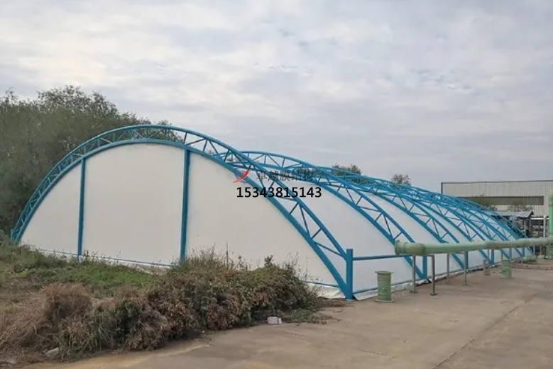 污水池加蓋膜結(jié)構(gòu)能夠防止污水池中的水分蒸發(fā),減少水量損失,增加污水處理量;同時(shí),污水池加蓋膜結(jié)構(gòu)能夠保持污水池內(nèi)的溫度穩(wěn)定,避免夏季水溫過高或冬季水溫過低,影響微生物的活性,提高污水處理效率。