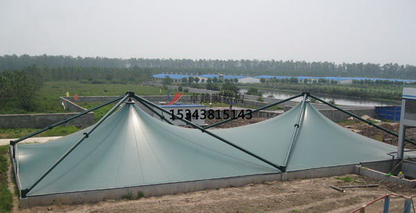 膜材選擇:根據(jù)處理池的規(guī)模、使用要求和環(huán)境條件,選擇合適的膜材。常用的膜材有聚酯類、聚四氟乙烯類和玻璃纖維類等,其中聚酯類膜材具有較高的強(qiáng)度和耐久性,適合于大型污水處理設(shè)施。