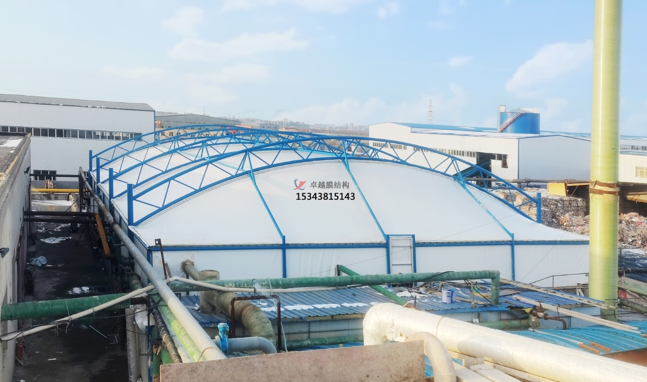 污水池加蓋是一種節(jié)能環(huán)保舉措,膜結(jié)構(gòu)的使用不僅解決了污水池內(nèi)廢氣的污染現(xiàn)象,而且對(duì)廢氣的治理達(dá)到排放要求。傳統(tǒng)的污水池加蓋方式有玻璃鋼加蓋,陽光板加蓋等,但是,隨著污水池廢氣污染的不斷嚴(yán)重,傳統(tǒng)的