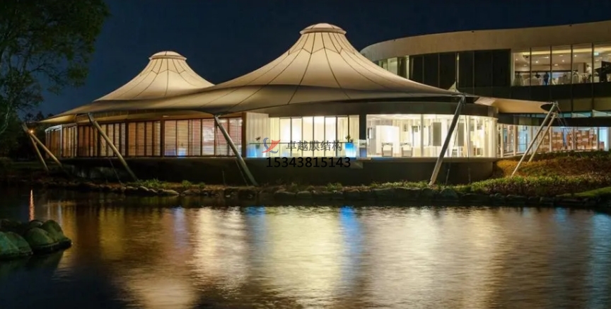 膜結構帳篷酒店的設計理念強調(diào)與自然環(huán)境的和諧共生。酒店通常選址于風景秀麗的自然景區(qū),如山林、湖畔、沙漠或草原,讓旅客在享受奢華住宿的同時,也能近距離感受大自然的魅力。帳篷酒店的外觀設計往往融入周邊的自然景觀,采用流線型或仿生形態(tài),仿佛是大自然中的一部分,與周圍的環(huán)境相得益彰。