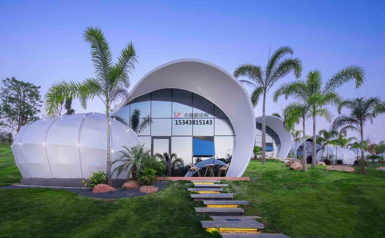 膜結構帳篷酒店更加穩(wěn)固、耐用,且能夠抵御惡劣天氣的侵襲,為旅客提供一個安全、舒適的住宿環(huán)境。
