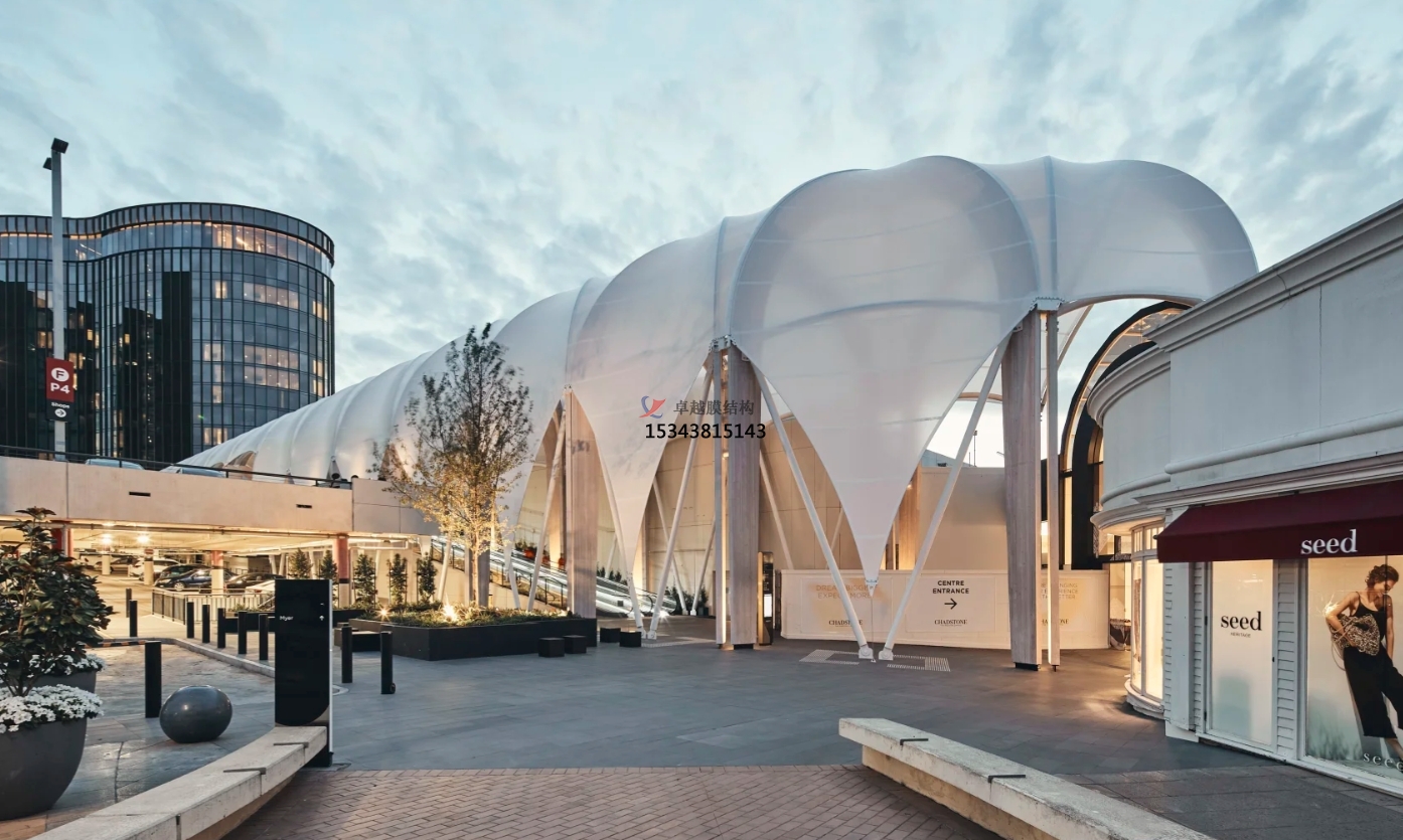 以簡潔的線條和幾何形狀,搭配中性色調(diào)的膜材,時尚大氣,與現(xiàn)代都市風格的商業(yè)步行街完美融合。
