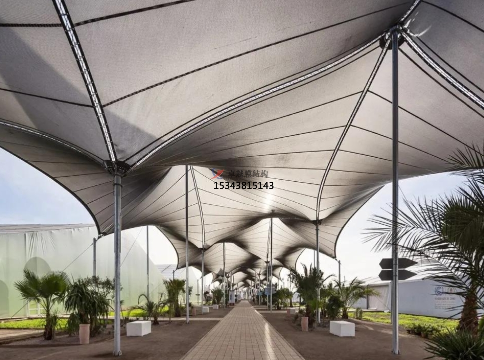 索膜結(jié)構(gòu),顧名思義,是由高強(qiáng)度柔性薄膜材料與其他材料(如鋼索、鋼結(jié)構(gòu)支柱等)共同作用而形成的一種穩(wěn)定的空間結(jié)構(gòu)形式。其最大的特點(diǎn)在于造型自由、輕巧、柔美,能夠創(chuàng)造出各種優(yōu)美的曲面造型,給人以強(qiáng)烈的視覺(jué)沖擊力。此外,索膜結(jié)構(gòu)還具有阻燃、制作簡(jiǎn)易、安裝快捷、節(jié)能、易于維護(hù)以及使用安全等優(yōu)點(diǎn),這些特點(diǎn)使得它在世界各地得到了廣泛的應(yīng)用。