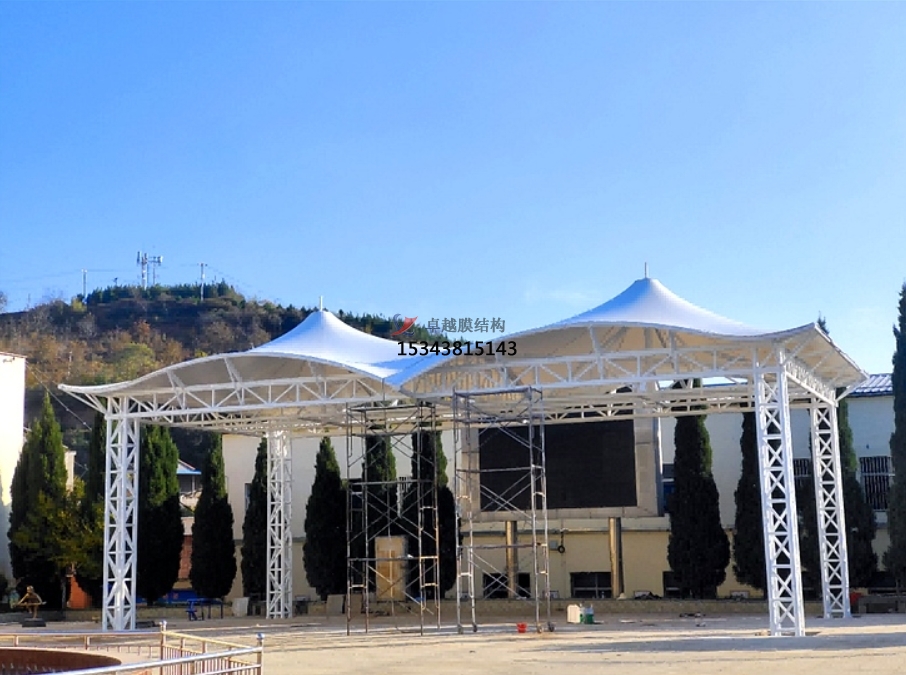 增強(qiáng)舞臺(tái)效果:舞臺(tái)膜結(jié)構(gòu)遮陽棚的造型多樣、美觀大方,可以成為舞臺(tái)上的一個(gè)重要視覺焦點(diǎn)。通過與舞臺(tái)布景、燈光等元素的結(jié)合,遮陽棚能夠增強(qiáng)整體的舞臺(tái)效果,為觀眾帶來更加震撼的演出體驗(yàn)。