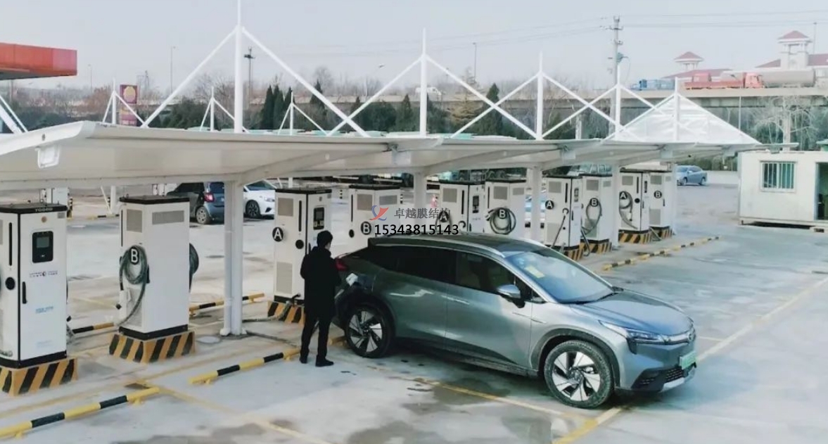 充電站膜結(jié)構(gòu)罩棚作為電動(dòng)汽車充電設(shè)施的重要組成部分,以其獨(dú)特的優(yōu)勢(shì)在現(xiàn)代城市中逐漸嶄露頭角。這種結(jié)構(gòu)不僅為電動(dòng)汽車提供了必要的保護(hù),還以其美觀、實(shí)用的特性,成為城市景觀中的一道亮麗風(fēng)景線。