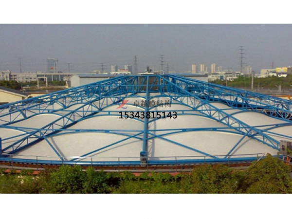 索膜結(jié)構(gòu)污水池結(jié)構(gòu)形式:其結(jié)構(gòu)形式有反吊膜結(jié)構(gòu)、懸索結(jié)構(gòu)和充氣膜結(jié)構(gòu)(無骨架式)三種。其中,反吊膜結(jié)構(gòu)的原理是以外部鋼構(gòu)為支撐骨架,將抗腐蝕性強的膜材(如氟碳纖維膜)反吊覆蓋于污水池上方,使膜材與腐蝕性氣體隔離,保護鋼構(gòu)不受侵蝕,適用于造紙廠、化工廠、市政污水處理廠等腐蝕性環(huán)境;懸索結(jié)構(gòu)的特點是利用柔性拉索調(diào)節(jié)膜面張力,無需內(nèi)部骨架,材料用量少且工期短,局限性是其僅適用于特定跨度的池體,靈活性較低;充氣膜結(jié)構(gòu)(無骨架式)的工作原理是通過內(nèi)部空氣壓力支撐膜面,形成大跨度無立柱空間,適用于超大池體(如200米以上跨度),優(yōu)勢是可增設(shè)門窗,便于設(shè)備檢修。