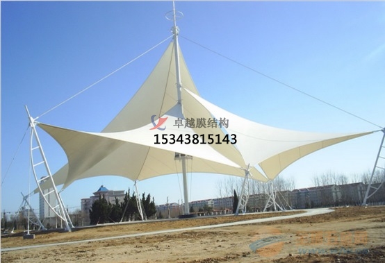 膜結構景觀是近一段時間內(nèi)獲得迅猛發(fā)展的一種新型空間結構,它由于只承受張力,使得材料受力性能得到充分發(fā)揮,而且以重量輕,允許跨越大空間和設計成各種外形,施工周期短,維護方便,造價低廉,可滿足多方面的使用要求,易與自然環(huán)境融為一體等優(yōu)點,被國際建筑界譽為二十一世紀的建筑。