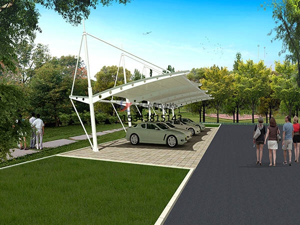 停車場的規(guī)劃和建設(shè)成為現(xiàn)代城市規(guī)劃的重要組成部分,在以后的建設(shè)里會變得越來越重要。膜結(jié)構(gòu)輕巧、別致的造型在停車場及候車廳的建設(shè)中擔(dān)當(dāng)了重要角色,除了滿足防風(fēng)雨、防日曬等基本功能外,并有較好的標(biāo)識招攬效果,展現(xiàn)了人們個性化的一面。膜結(jié)構(gòu)停車棚,自重輕,具有良好的受力特點——成為大跨度空間結(jié)構(gòu)的主要形式之一。