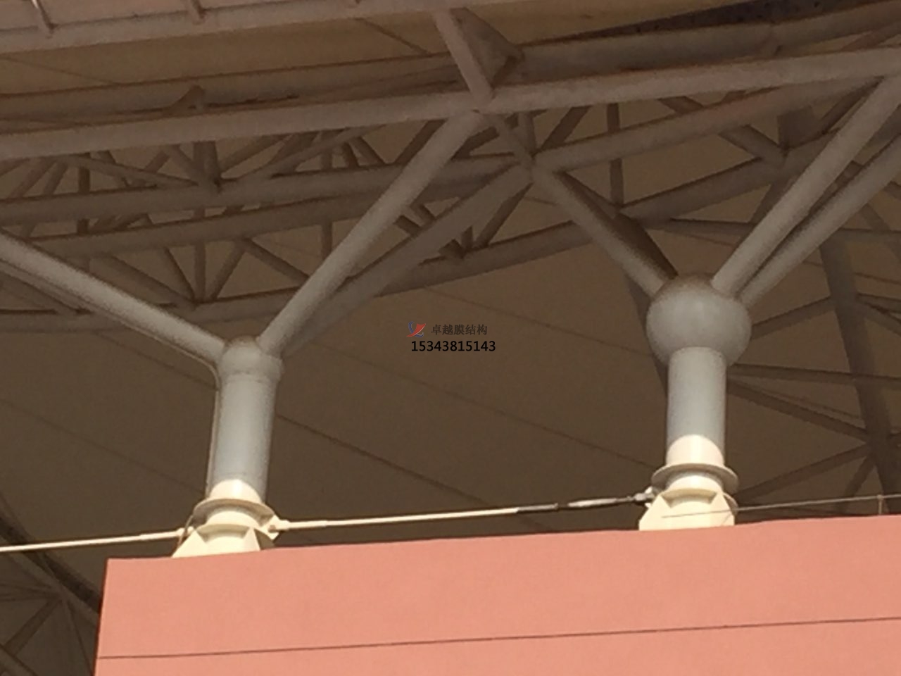 四、建筑膜結(jié)構(gòu)罩棚在結(jié)構(gòu)的穩(wěn)定性,耐久性、抗風性、抗雨雪性對比傳統(tǒng)的彩鋼板有著不可比擬的優(yōu)勢,膜結(jié)構(gòu)本身的應力結(jié)構(gòu)在遇到雨雪天氣膜結(jié)構(gòu)本身的結(jié)構(gòu)特性也可以保證其大跨度的抗壓穩(wěn)定性。