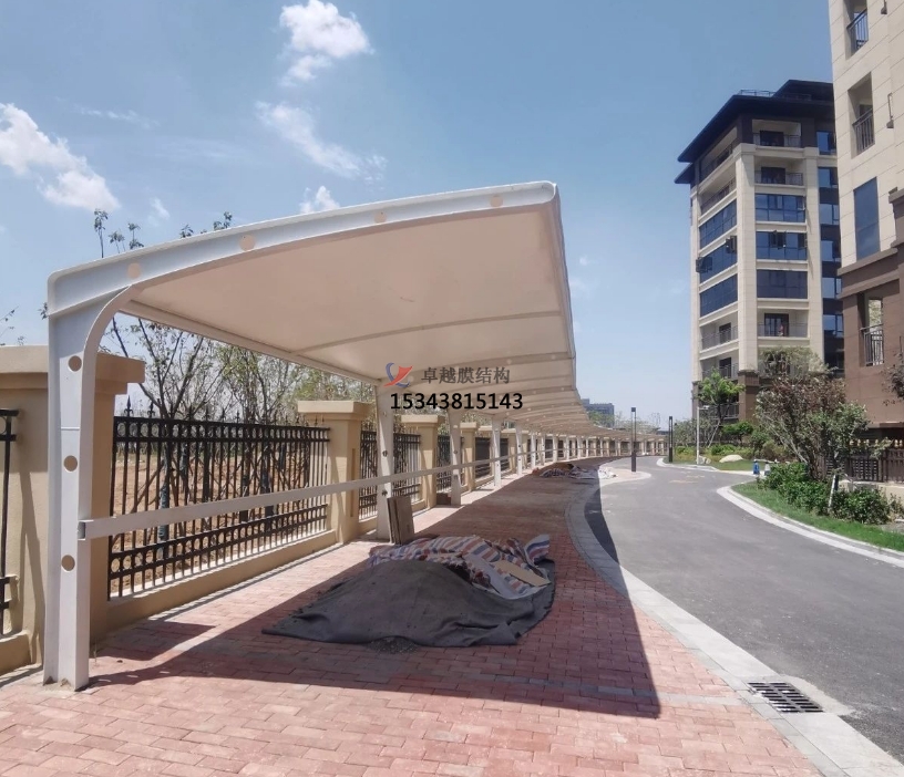 膜結構車棚在與以往的舊式車棚的比較中,整體能承受的載荷大很多,膜結構受力點小,單位尺寸上能承受的壓強高,膜結構車棚都穩(wěn)固如山,并且膜結構車棚的透光性達到13%,不會因為長時間的直曬變黃,也不會物理特性發(fā)生變化,比如變脆,軟化等現(xiàn)象。